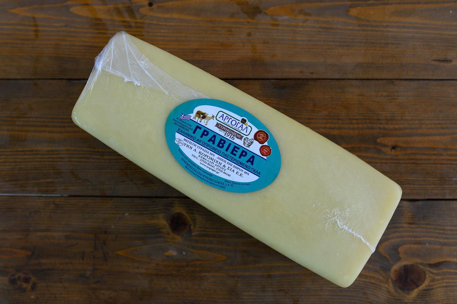 Γραβιέρα πικάντικη από ντόπιο πρόβειο γάλα ελληνικών φυλών με πικάντικη γεύση κανονικής αλατότητας και βουτυράτης υφής.