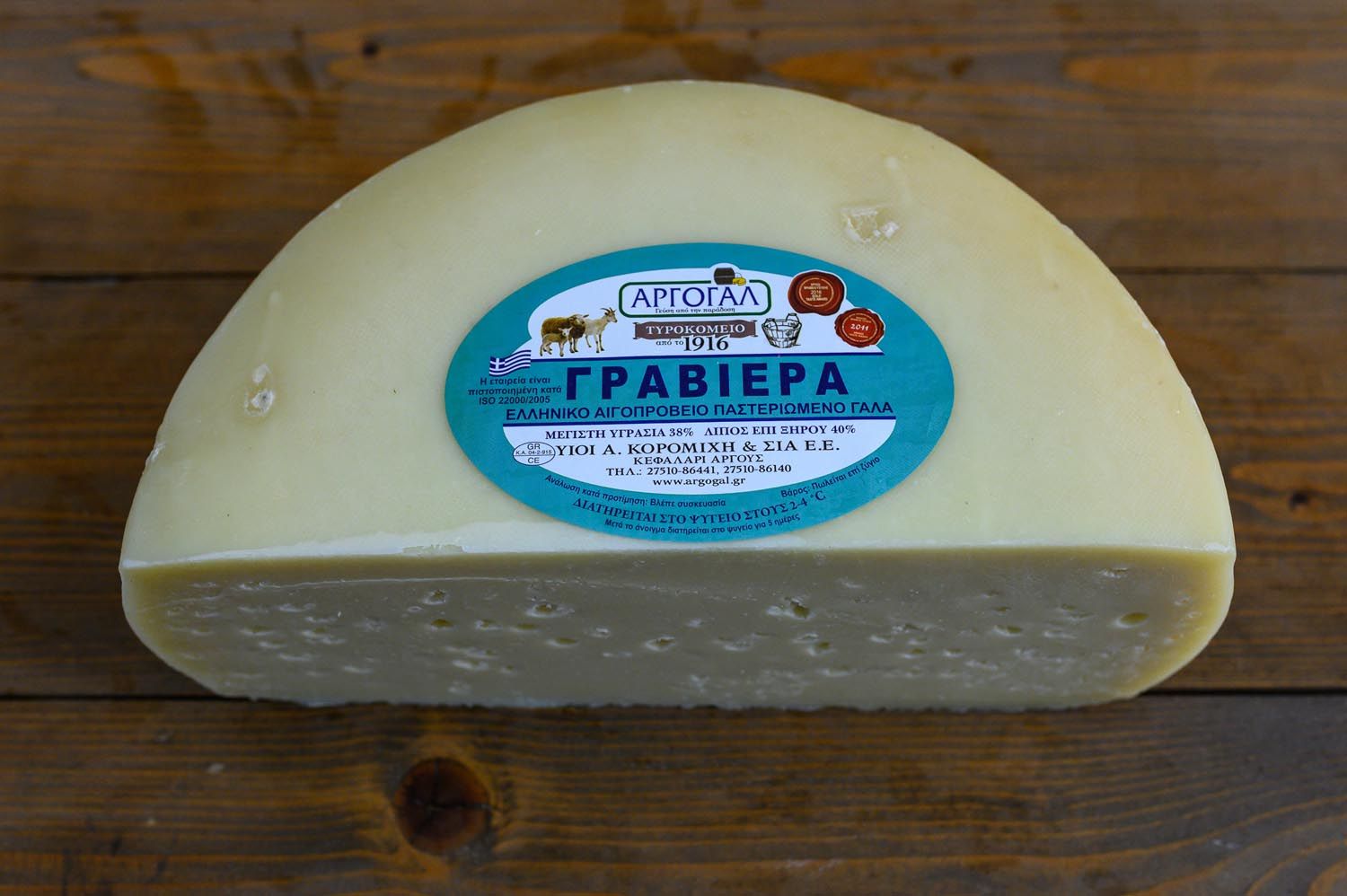 Γραβιέρα από ντόπιο πρόβειο γάλα ελληνικών φυλών με πικάντικη γεύση κανονικής αλατότητας και βουτυράτης υφής.
